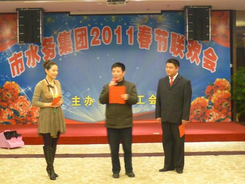 凝心集力一家親 團結和睦水務人 ——集團工會舉行2011年新春聯(lián)歡會 在輕松舒緩的音樂聲中,一場青春亮麗的T臺秀拉開了集團公司2011新春聯(lián)歡會的序幕。 元月24日晚,水務集團工會在天吉新時代舉行了2011新春聯(lián)歡會,除值班留守人員外,集團公司全體員工共計200余人參加了聯(lián)歡會。會上,集團公司總經(jīng)理王興友發(fā)表了熱情洋溢的講話,他代表集團黨總支感謝廣大干部職工一年來為水務集團的發(fā)展作出的貢獻,并向廣大干部職工拜個早年。 聯(lián)歡會上,職工們自編自演了健身操、舞蹈、小品、以及對唱、合唱,互動游戲《踩氣球》贏得了全場一片喝彩。在熱烈的掌聲中,王總與特邀嘉賓李財利先生合唱了一曲《愛拼才會贏》,將晚會推向了高潮。 整場晚會充滿和諧、喜氣、團結、祥和的氣氛,大家互致節(jié)日問候,仿佛一個其樂融融的大家庭。工會主席金曦玲表示,明年的春節(jié)聯(lián)歡晚會將再上檔次、再添新意,再創(chuàng)新高。(圖為集團公司總經(jīng)理王興友在春節(jié)聯(lián)歡會上致辭)
