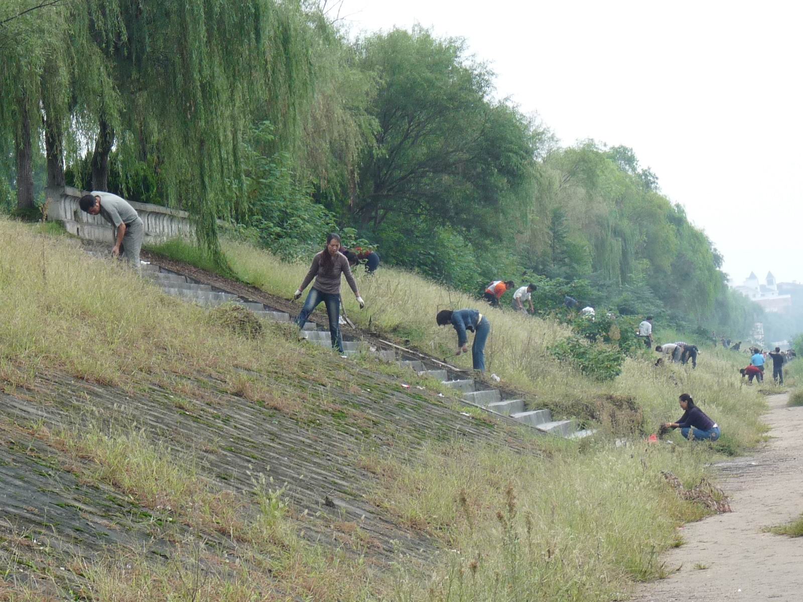 水上公園一橋至二橋段,全長1300米,坡岸上的雜草、雜物較多。既影響市容市貌,又威脅著水源水質(zhì)的安全。水務(wù)集團干部職工們揮鍬掄鏟,清理雜草,經(jīng)過2天的勞動將護坡上的雜草及水面漂浮物全部清理干凈,清理垃圾200余車。